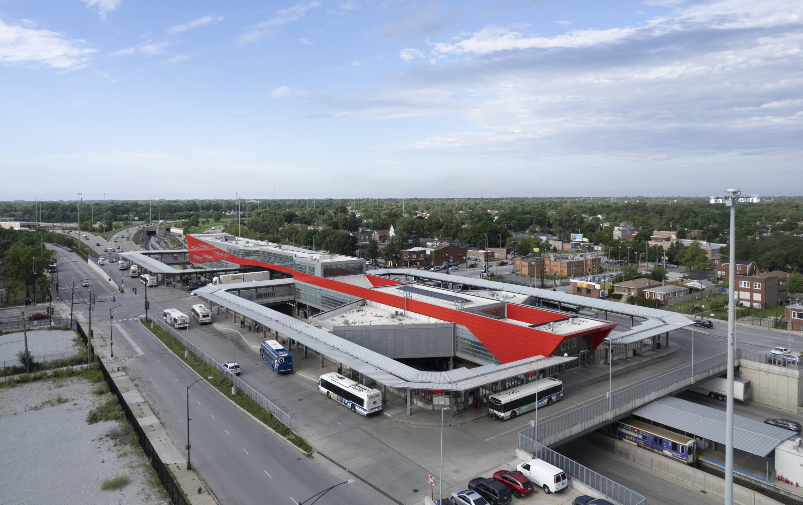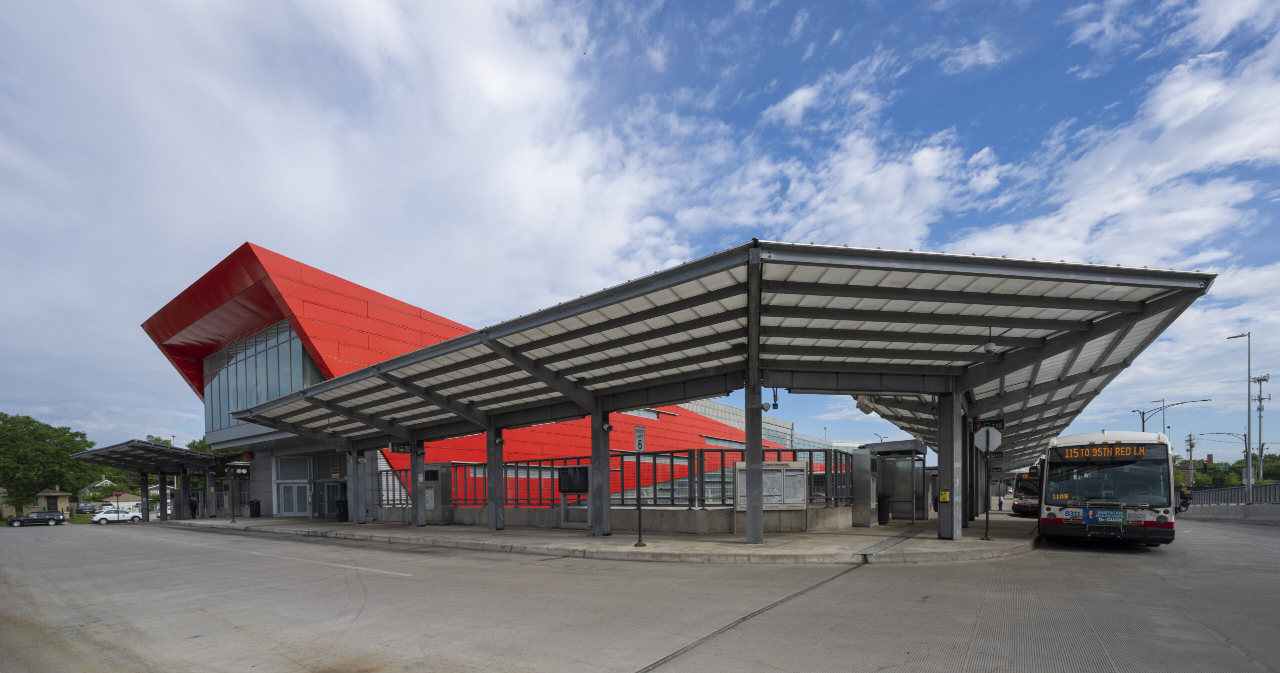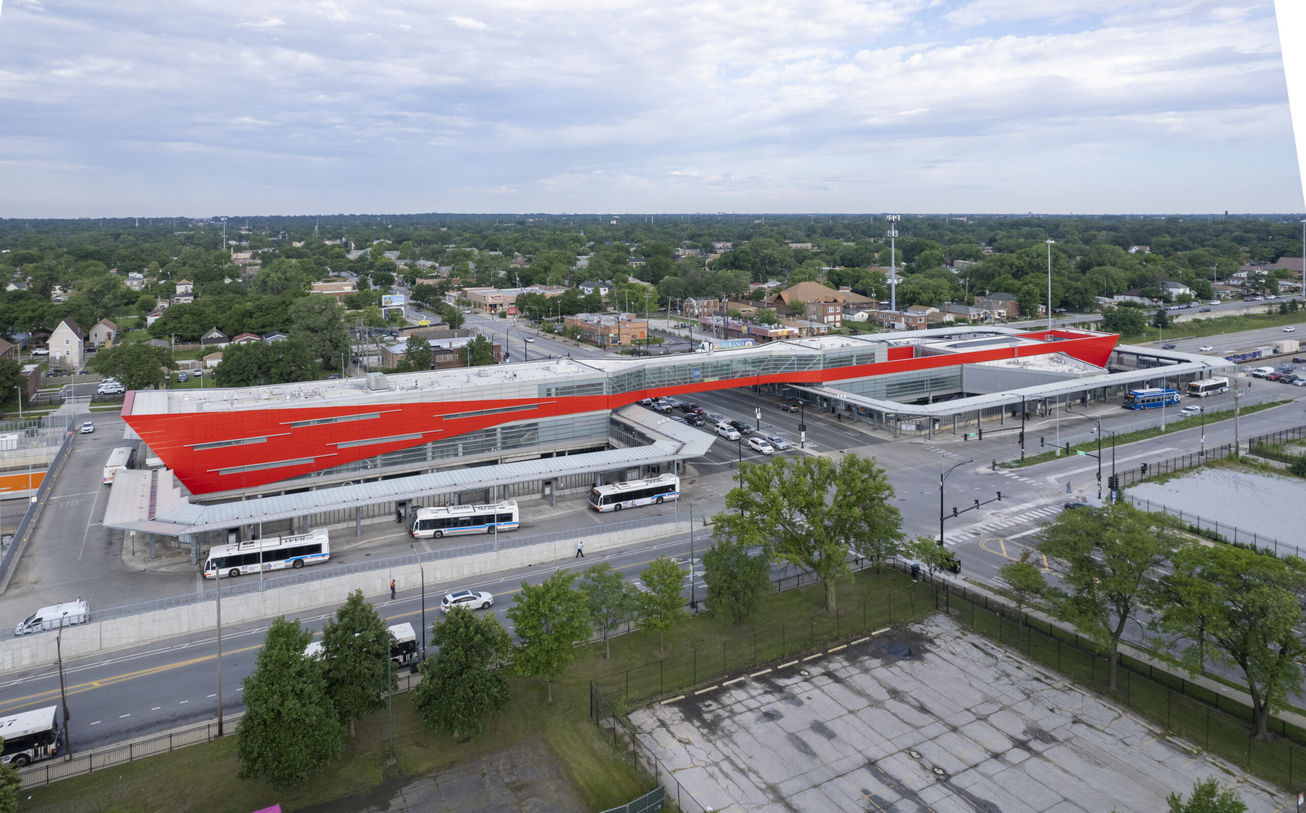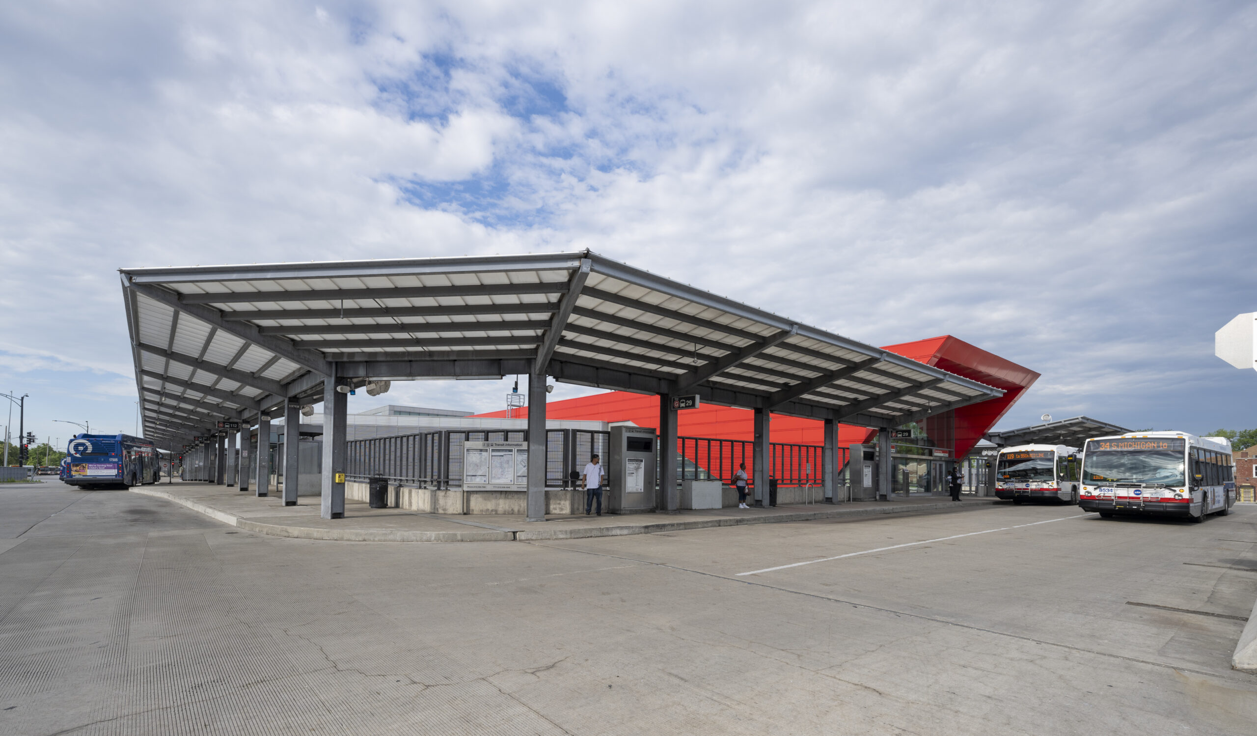 Pinto constructed the large-scale bus turnaround canopy above the expressway at the 95th Street Red Line terminal—one of the busiest in the CTA system. The work supported a multi-year modernization effort, helping improve pedestrian flow, weather protection, and transit efficiency in this critical South Side transportation corridor.