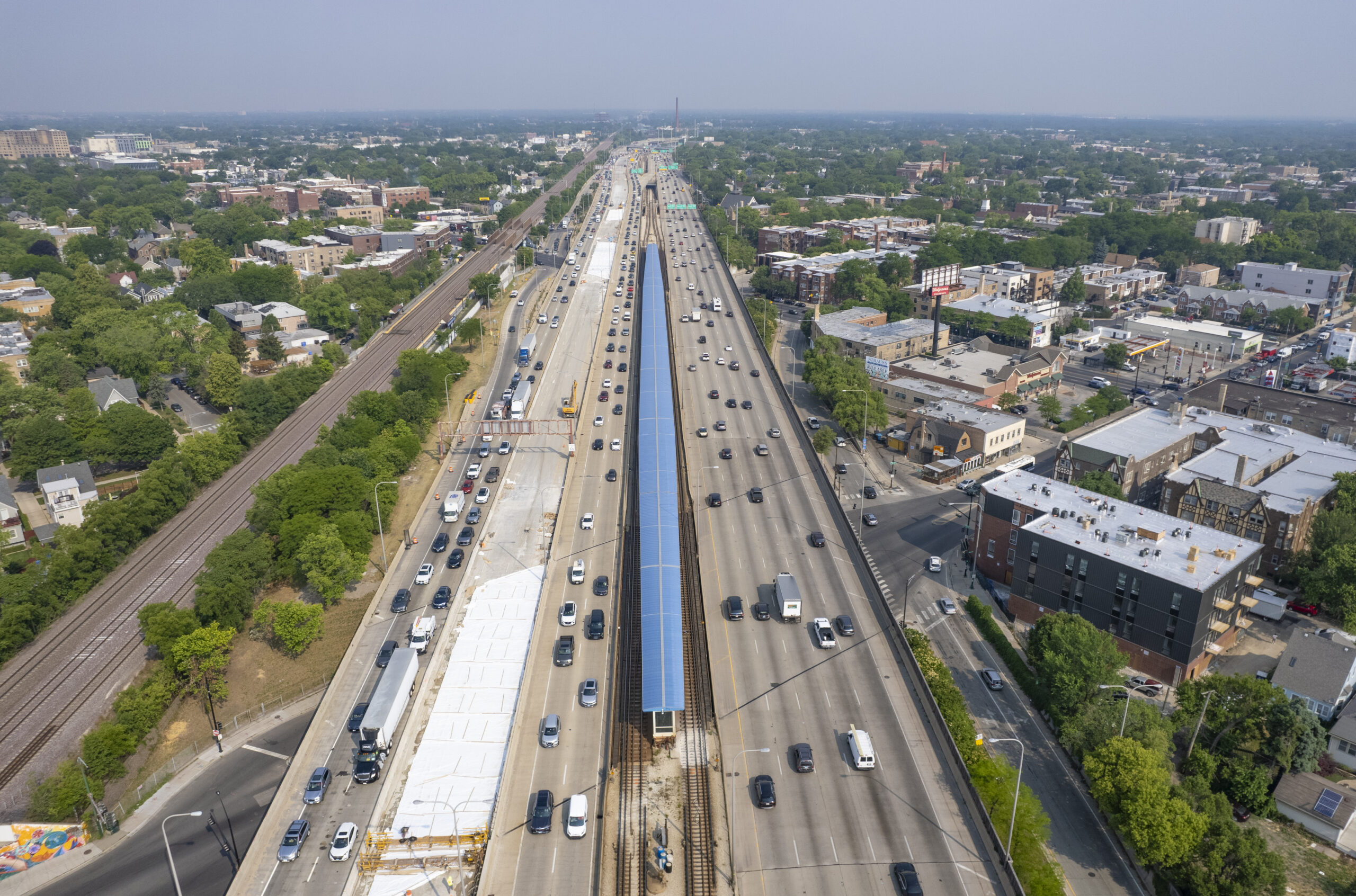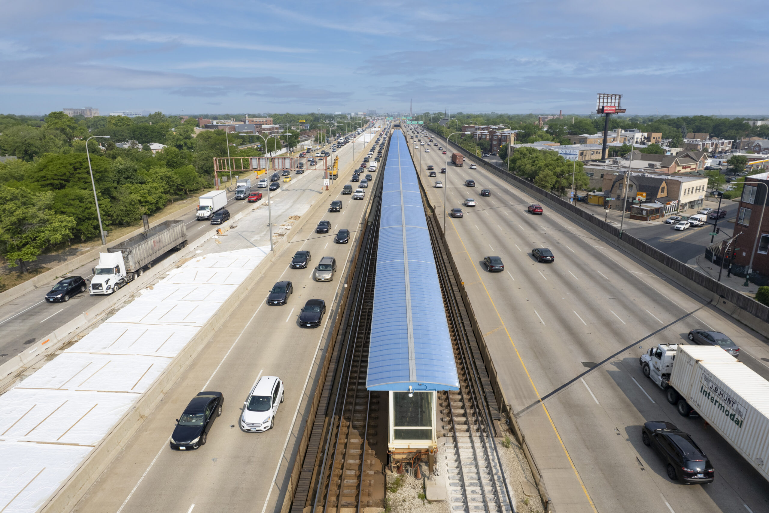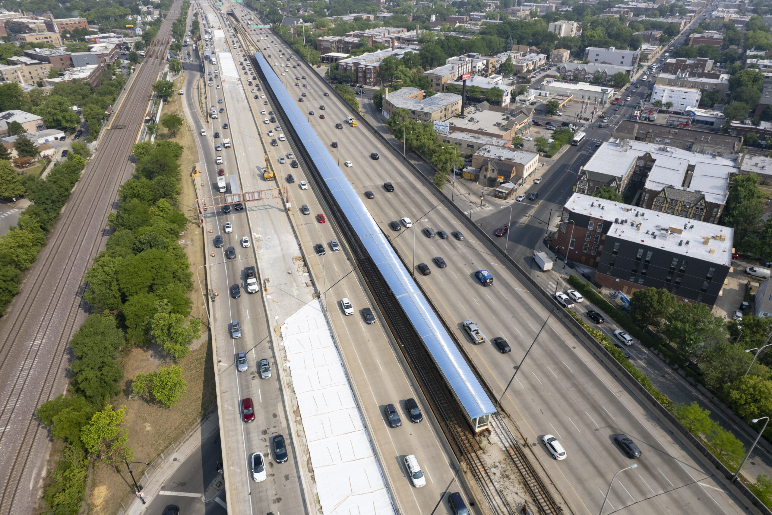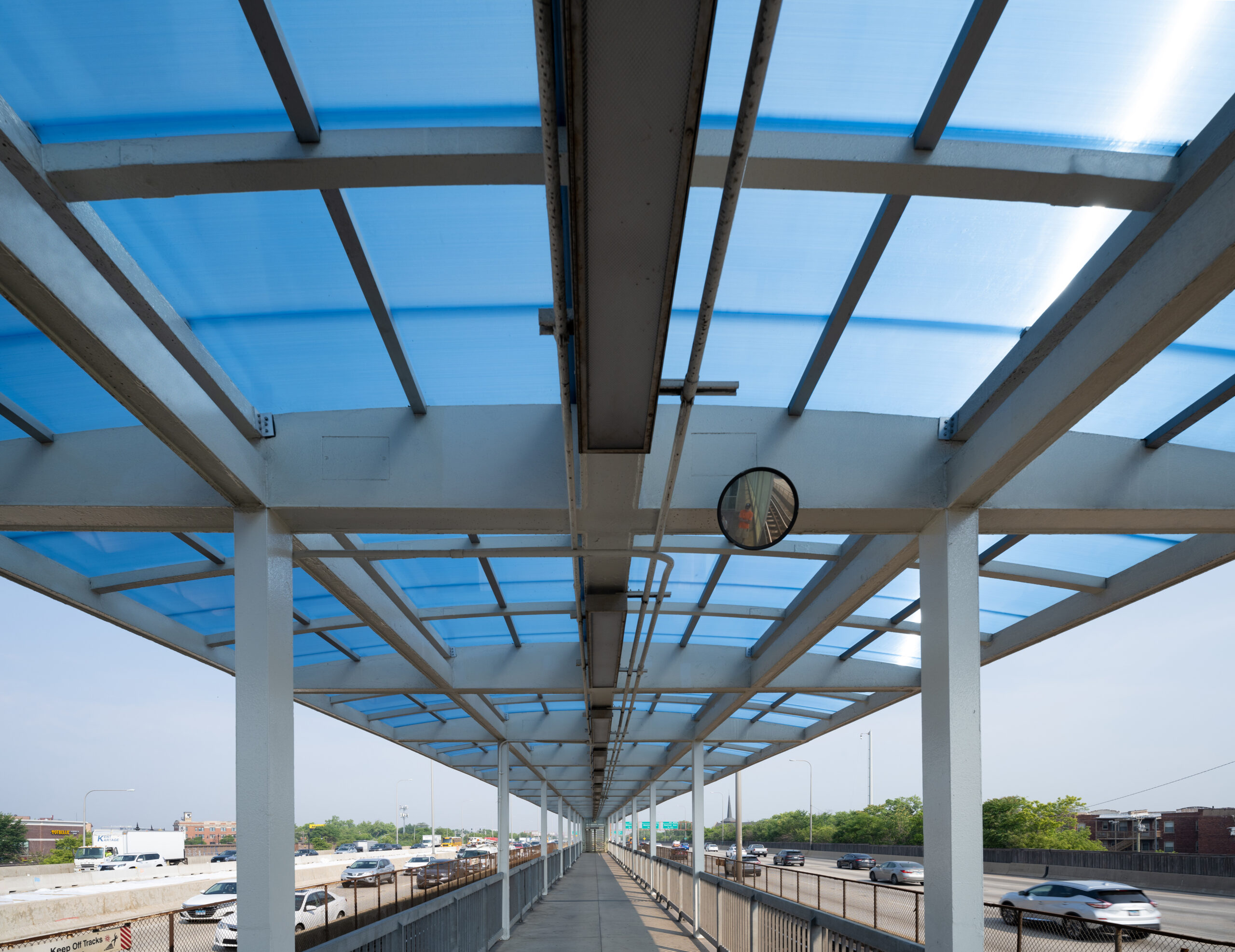 Pinto Construction Group constructed the platform canopy in the center median of the Kennedy Expressway. The project demanded careful logistical planning and execution within an active transit corridor, ensuring structural integrity and adherence to tight scheduling windows.