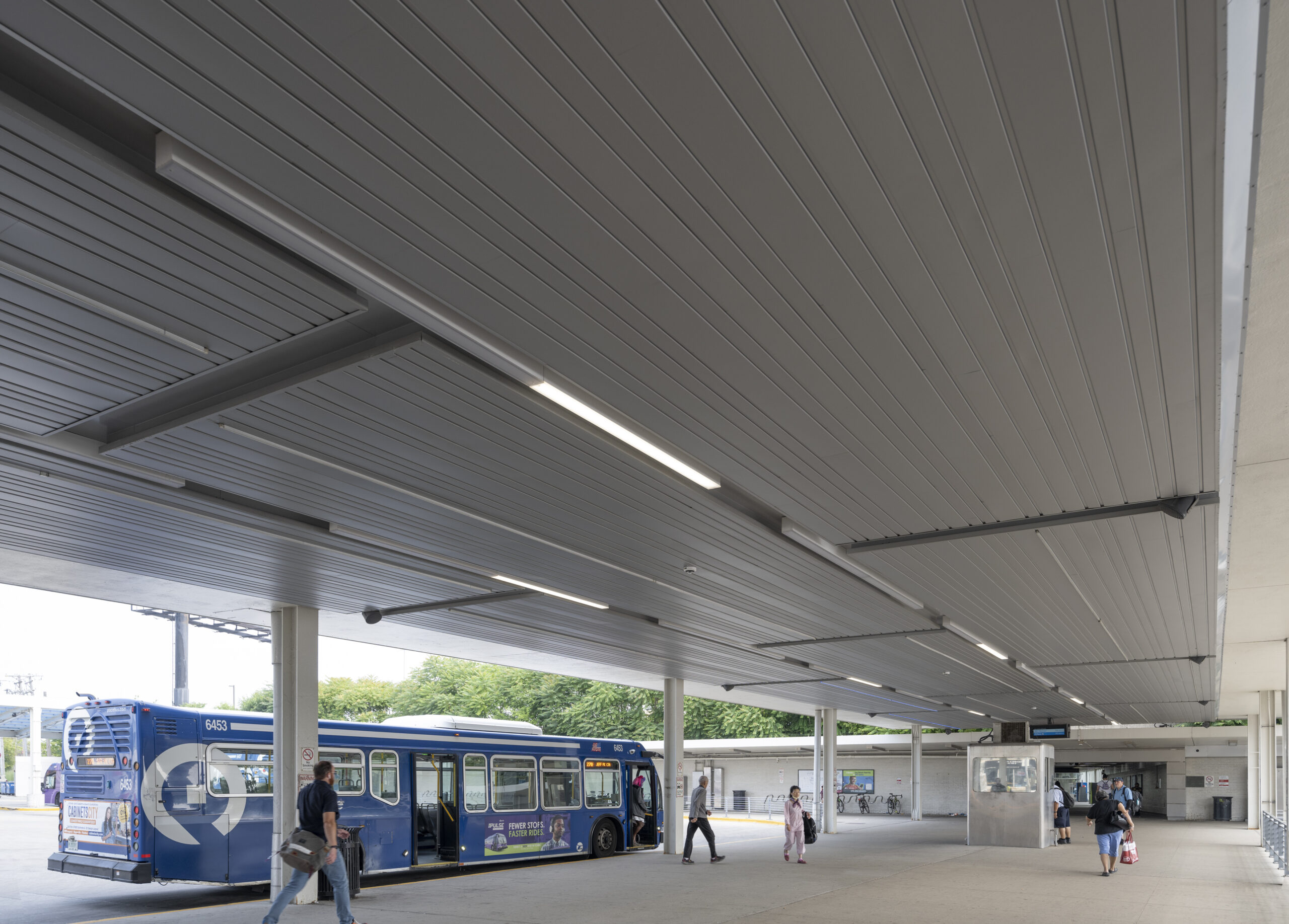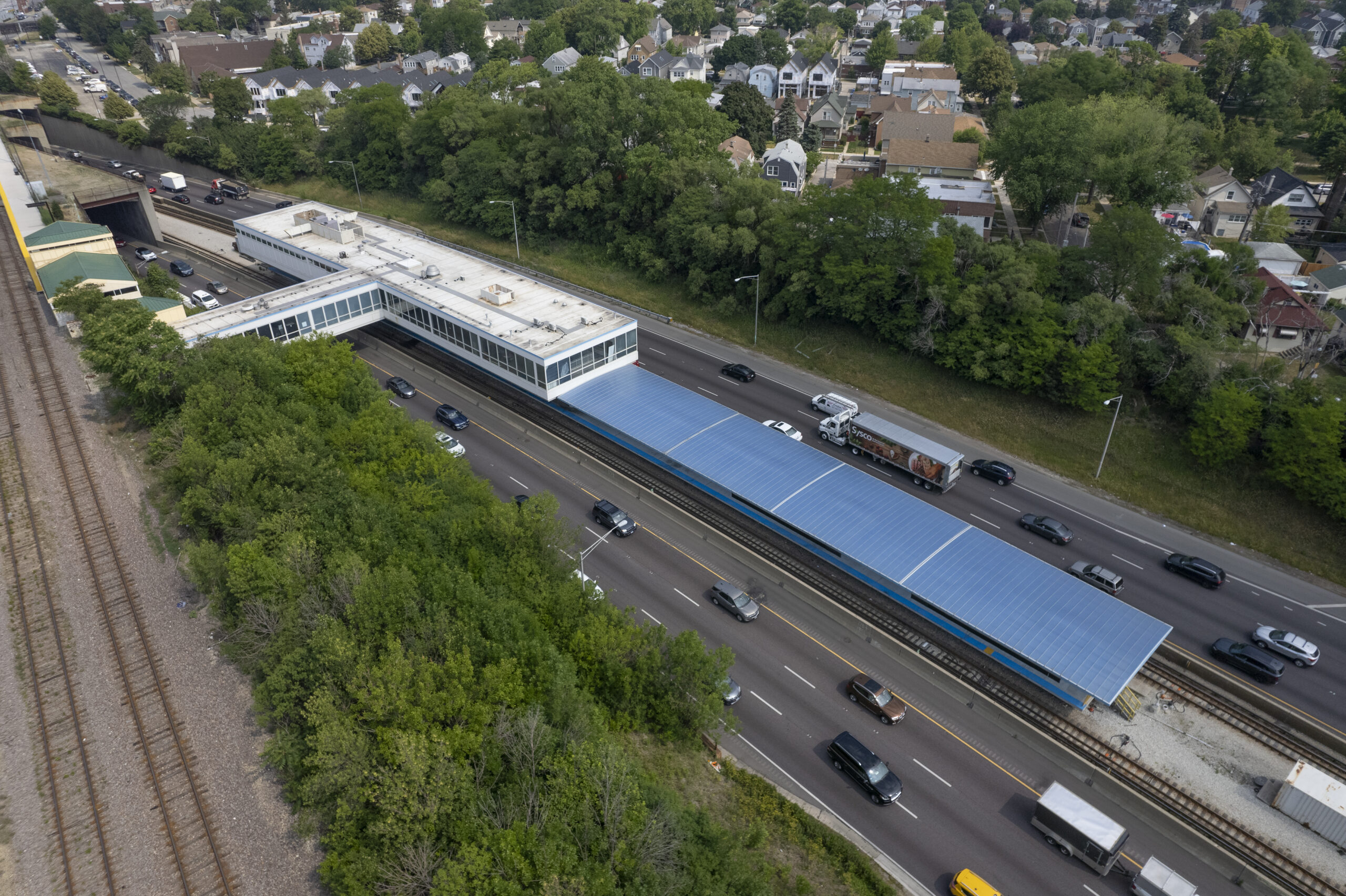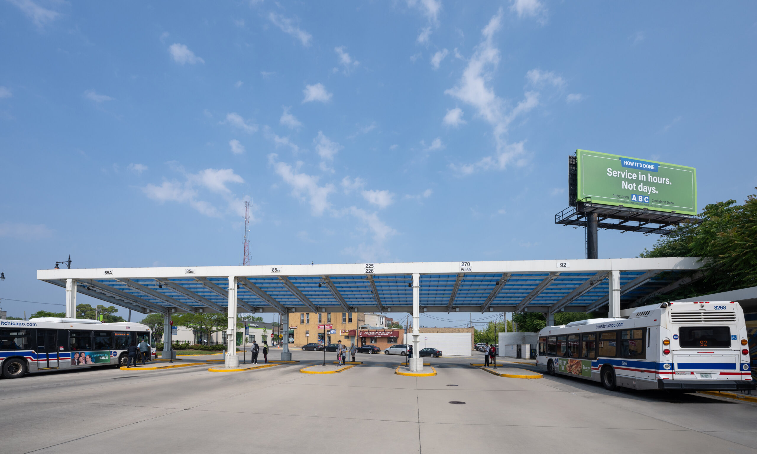 Pinto Construction Group completed extensive structural and architectural work at this major intermodal hub, including the platform canopy constructed over the expressway median, bus turnaround canopies, and a specialty ceiling at the station entrance. Additional scope included aluminum composite material (ACM) panel installation on the station façade and stainless steel paneling at the portal entrance, all executed with precision to meet CTA specifications and improve the public-facing aesthetic.